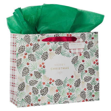 Merry Christmas Landscape Gift Bag with Plaid Gift Tag