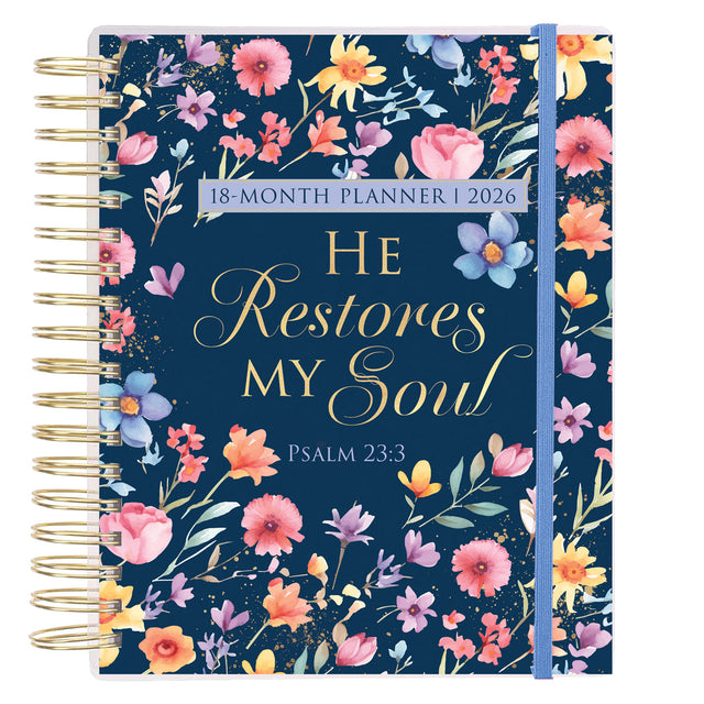 2026 Diary - 18-Month Planner for Women - He Restores My Soul - Wirebound is backordered and will ship as soon as it is back in stock.