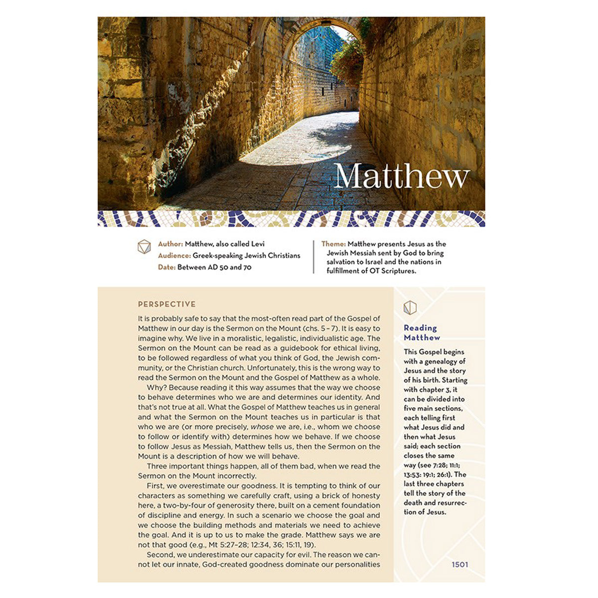 • Book Introductions provide perspective and application for every book of the Bible, plus timelines, reading guides, and more.