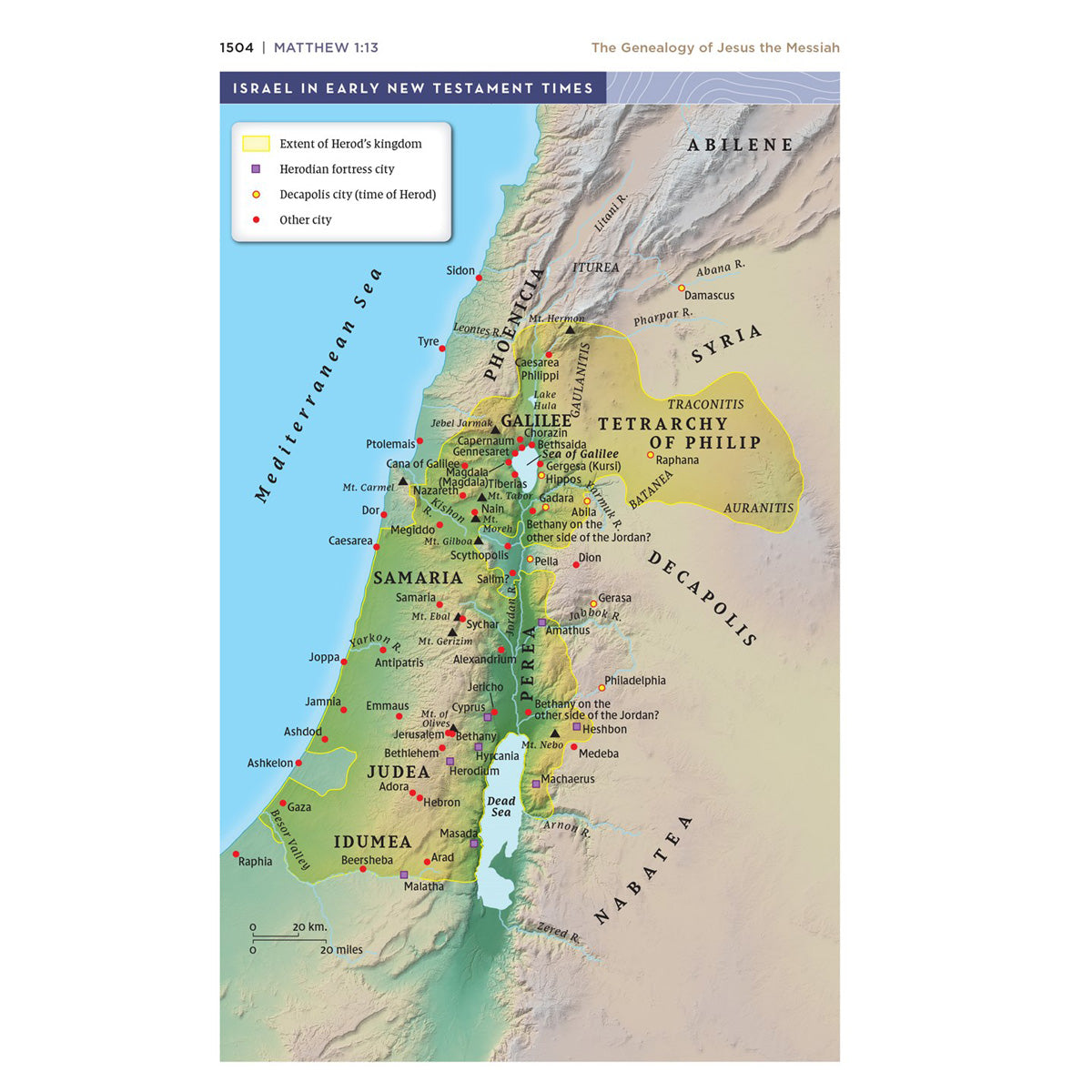 • 45 full-color in-text maps help you visually follow along with the locations of biblical events.