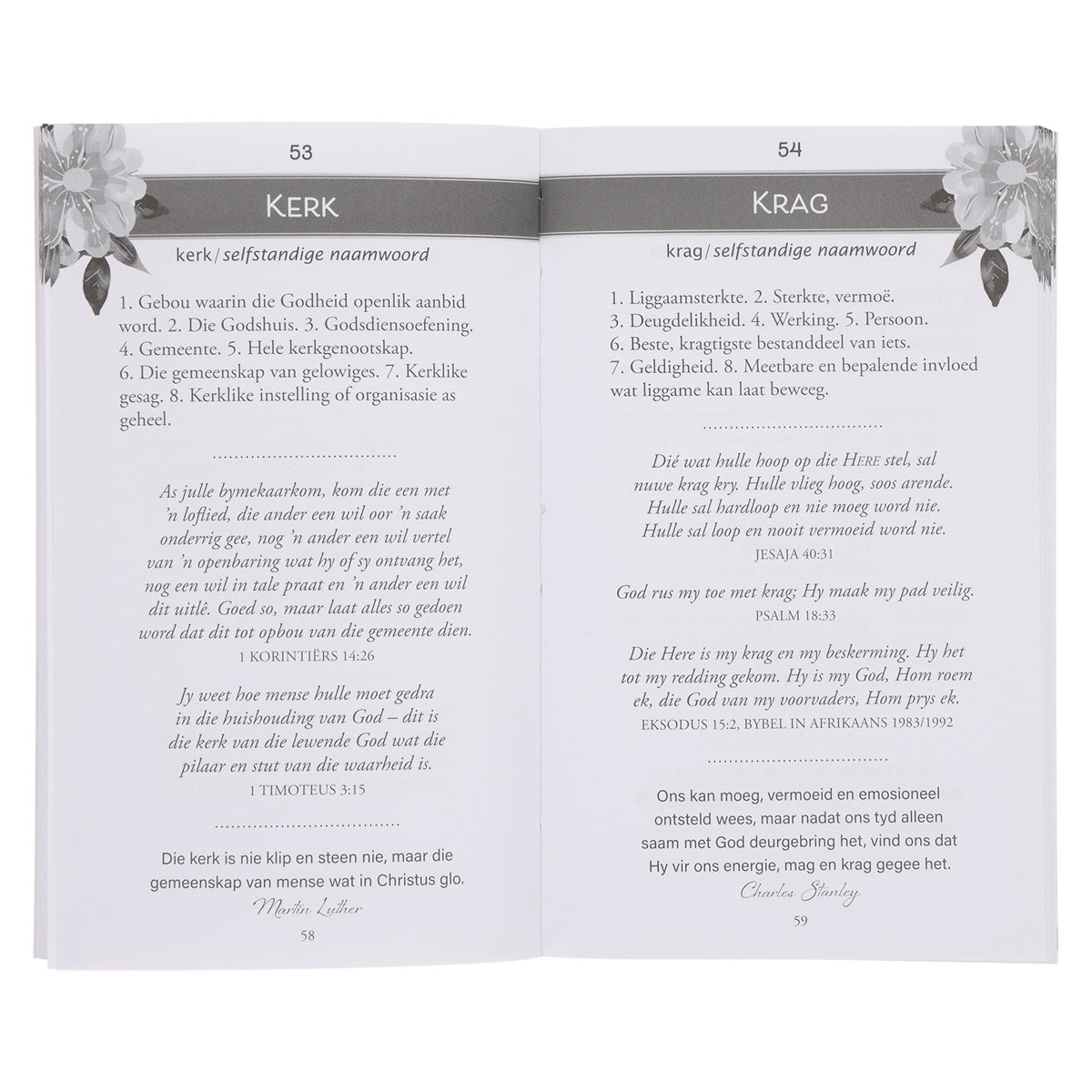 101 Woorde wat saak maak vir vroue bied 101 relevante onderwerpe vir vroue, soos geloof, vriendskap, verhoudings, gebed en jou loopbaan, met beloftes uit die Skrif en inspirerende aanhalings. Dit is die ideale manier om inspirasie te bring in die lewe van daardie kosbare vrou wat ’n bietjie bemoediging nodig het.