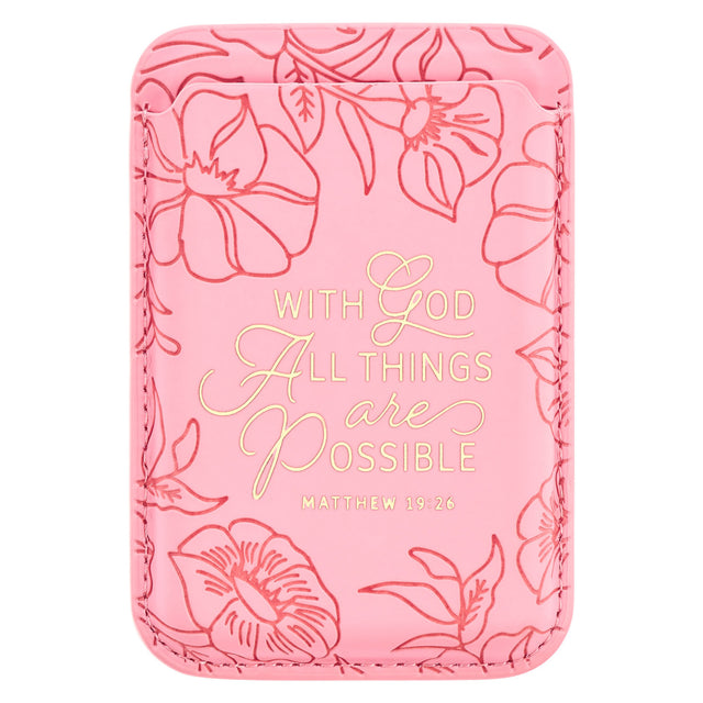 With God All Things Are Possible Pink Magnetic Faux Leather Phone Wallet