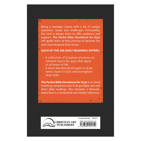 In stockSale price R18.00 Regular price R90.00Unit price /UnavailablePocket Bible Devotional For Guys Black (Paperback)