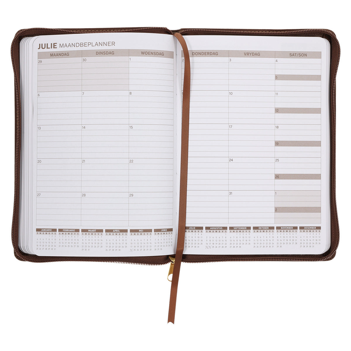 Die Angus Buchan-dagbeplanner 2026 is ideaal vir elkeen wat hulle dag doelgerig saam met God wil begin. Daar is ’n bladsy per dag vir afsprake met plek om jou eie tye in te vul. Die dagbeplanner se kunsleer-omslag het ’n rits sodat jy enige los papiere of klein items daarin kan toerits.