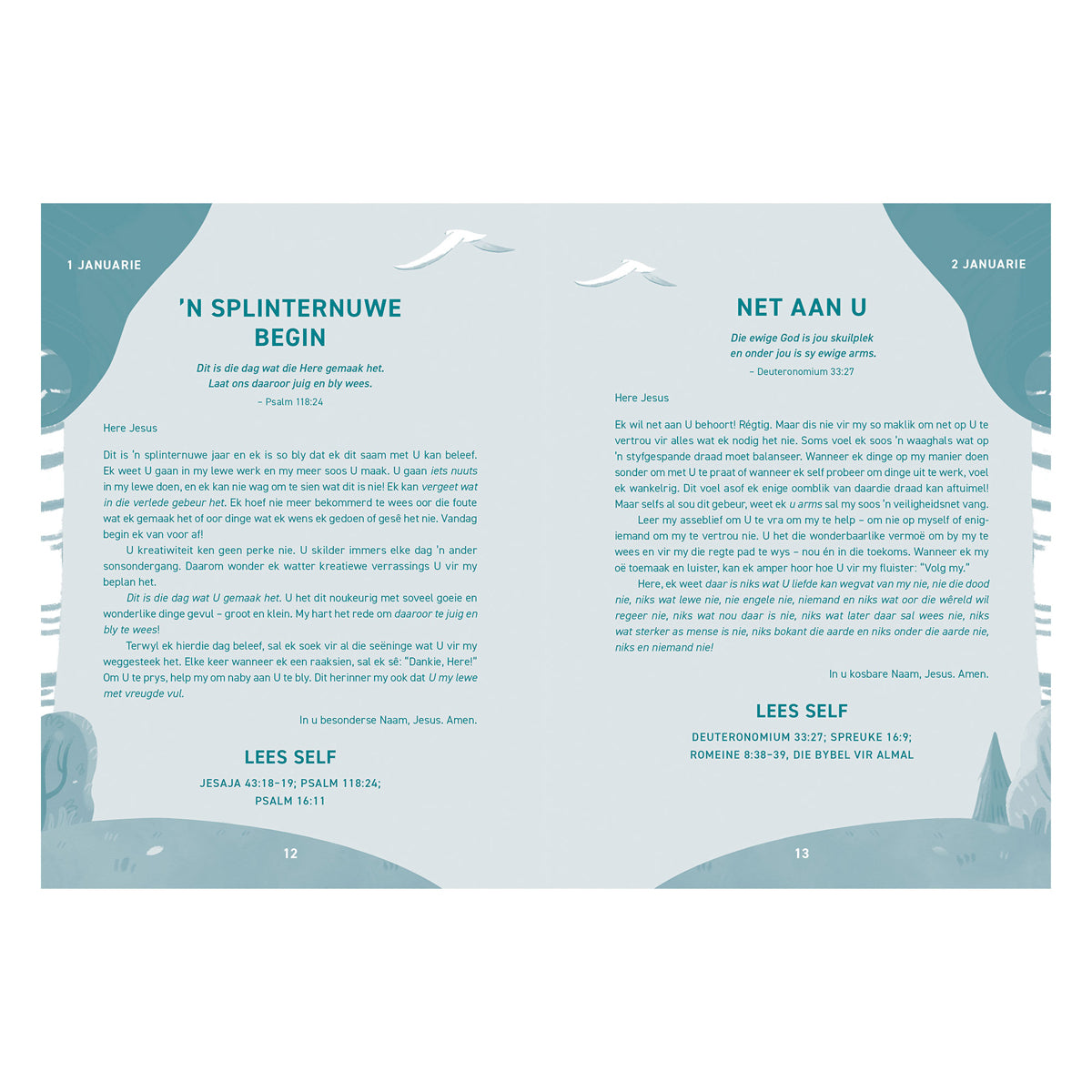 - Elke dag sluit 'n vers, gebed en skrifverwysings in om die Bybel beter te leer ken