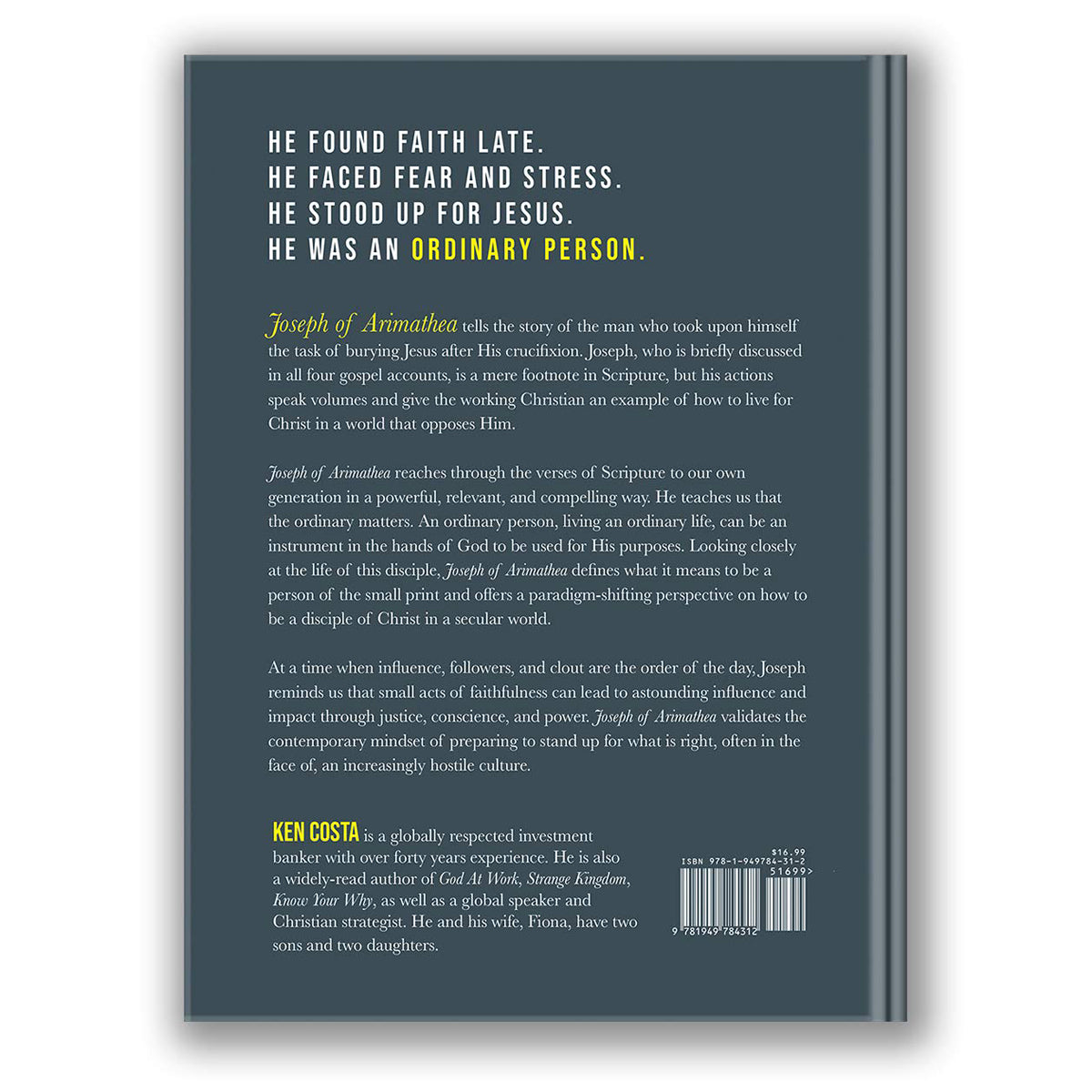 Joseph of Arimathea reaches through the verses of Scripture to our own generation in a powerful, relevant, and compelling way. He teaches us that the ordinary matters. An ordinary person, living an ordinary life, can be an instrument in the hands of God to be used for His purposes. Looking closely at the life of this disciple, Joseph of Arimathea defines what it means to be a person of the small print and offers a paradigm-shifting perspective on how to be a disciple of Christ in a secular world.