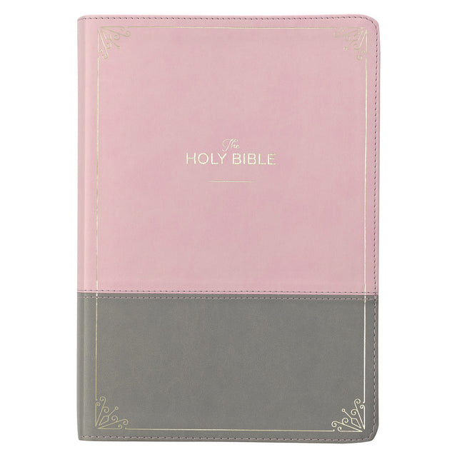 KJV Pink And Grey Faux Leather Bible Super Giant Print