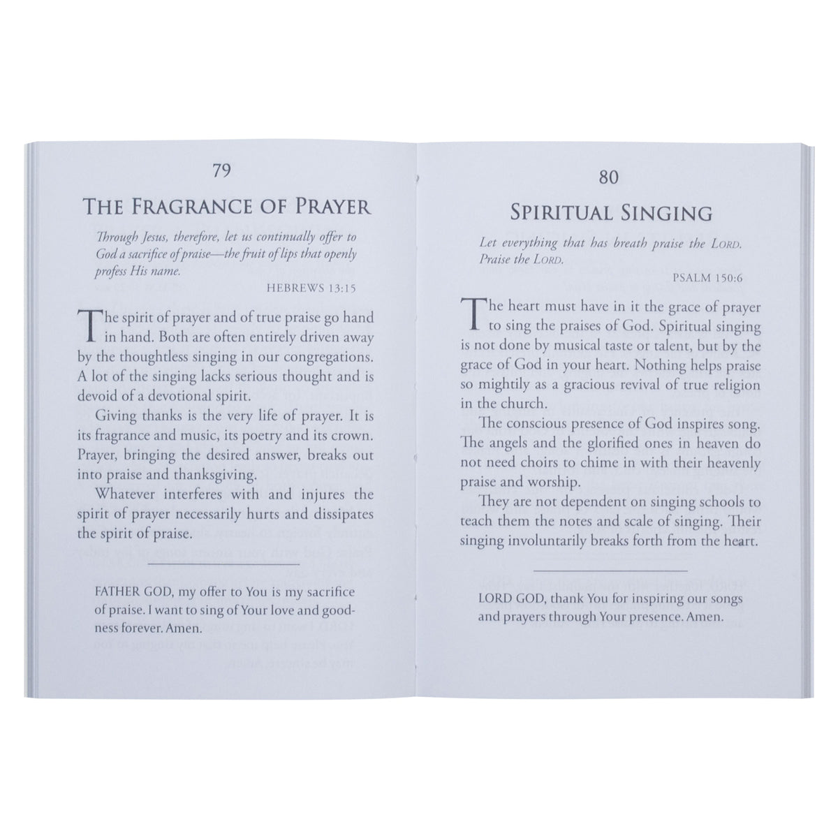 Mini Devotions: Living a Life of Prayer offers 180 concise, practical and powerful devotions on prayer by well-loved evangelist E.M. Bounds. It is a gem of inspiration that will help you to discover the necessity, possibilities and practical methods of prayer. It will invite you to experience the blessing that comes when you approach God in prayer with a humble heart.